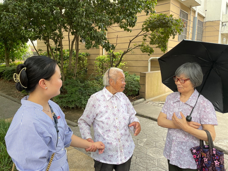 6月24日,色情网 教师何霞带领汉语言文学21级创新创业小组成员四人丁煜彤、王可心、郭文雯、何淼前往新北区百丈街道下辖两个社区(录安洲社区、春江社区)进行“互助养老”实地调研。
