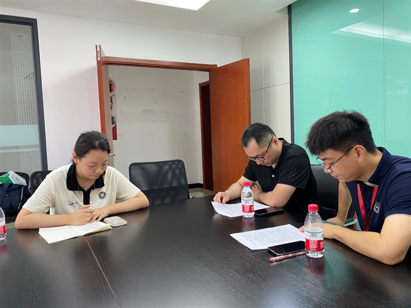 首先,师生五人采访了录安洲社区陈晨副书记和曹亚刚主任。陈书记与曹主任为小组成员详细介绍了社区为老人提供的定期助餐、上门助浴、建设老年活动室等一系列服务,解析了该社区老年人津贴的金额及其资金来源。随后,创新创业小组成员在陈书记和曹主任的带领下参观了录安洲社区老年服务中心。