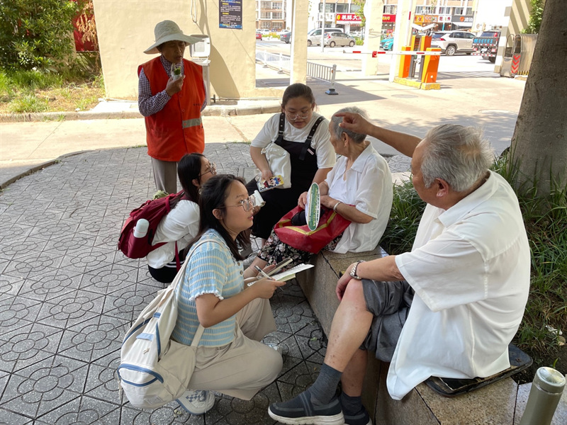 下午,师生五人随机访谈了十几位录安洲社区的老人,询问老人们“衣食住行”等生活上的具体情况。