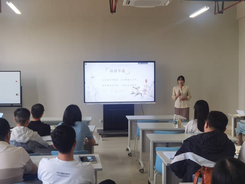 蒋碧薇老师则以问题为线索,用层层推进的方式开启了宋诗《游园不值》的解析之旅。细致入微的讲解,在引经据典的阐释下显得饱满又富有意蕴。蒋老师最后总结了宋诗景中含情、景中寓理、以理入诗的美学风格。