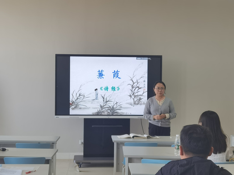 孙慧琦老师讲授的是《诗经》中的《蒹葭》,她先播放了一段唱咏的片段,后又逐句分析诗歌的韵律,为大家还原了古诗词的音韵之美。最后,孙老师对诗歌语义的多样性进行了阐释,极大地丰富和拓展了诗歌的内涵。