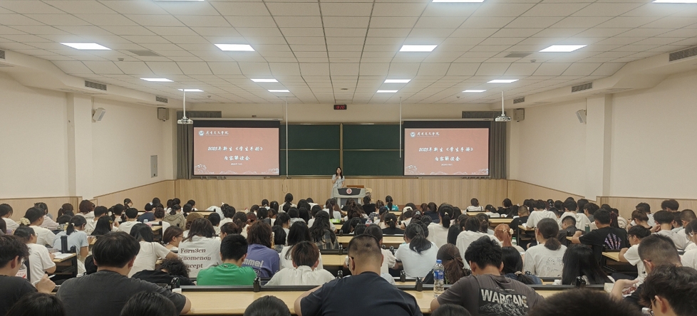 10月10日晚,色情网 在立功楼二阶顺利召开2025年新生《学生手册》内容解读会。解读会由学工办主任张燕红老师主讲,全体25年入学研究生、本科生、转本新生参加会议。