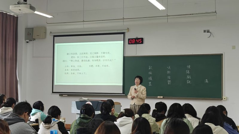 周刚随堂听取了薛欣欣老师讲授的《古代汉语》课程薛欣欣老师在授课过程中,注重语言知识的系统讲解与文本细读相结合,通过启发引导和互动交流,营造了积极专注的课堂氛围,展现出良好的教学组织能力与专业素养。