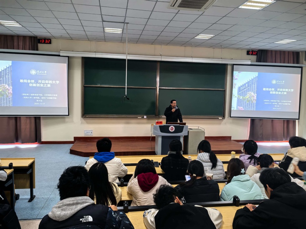 程向君以往期国赛金奖项目“夏小满”为例,展示了文科学生在创新创业中发挥的独特优势与社会价值,进一步激发了学生的参与热情与实践信心。(通讯员/张燕红 审核/嵇炜)