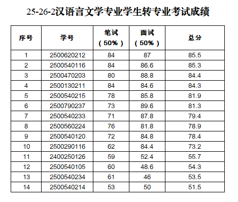 日对申请转入学院相关专业的学生进行了考核,经专业面试、笔试,现将考核总评成绩公示如下: