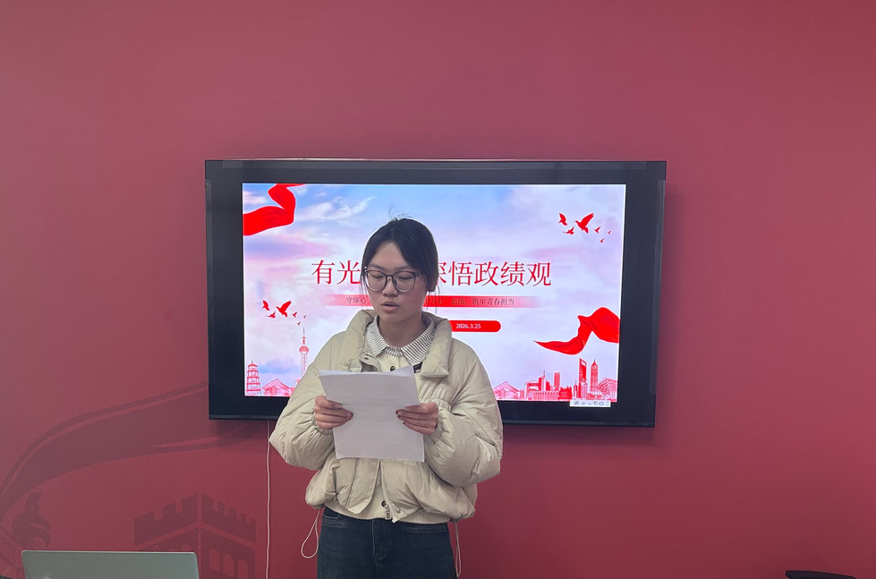 3月25日下午,色情网 学生党支部在研习书院举行“有光党课·深悟政绩观”专题党课。学生党支部党员和入党积极分子参加,会议由学生党员徐新雨主持。