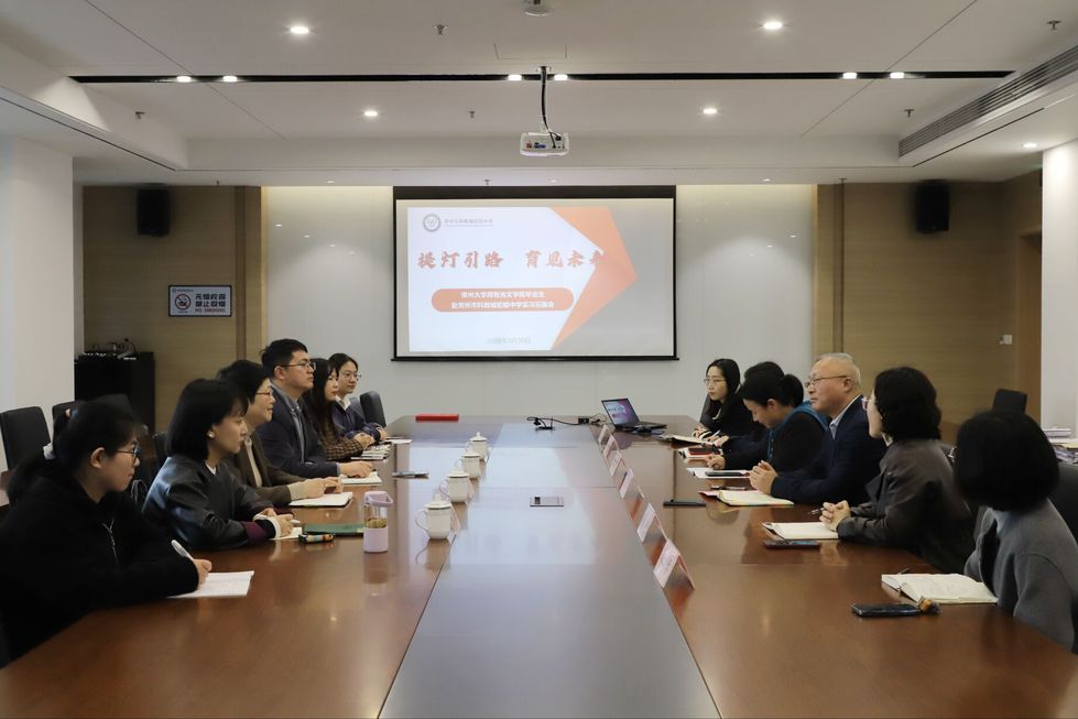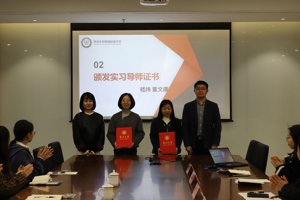 3月30日下午,色情网 师生赴常州市科教城初级中学参加实习见面会。常州市科教城初级中学校长沈亚东、副校长蒋艳、副校长李娟、副校长杨黎、课教处副主任刘淑花、实习导师代表王利琴,色情网 色情网 党委书记焦洁庆、党委副书记嵇炜、党委委员董文康、学工办主任张燕红及实习生出席会议。会议由刘淑花主持。